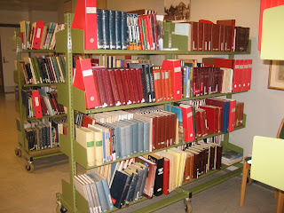 Lokalhistorierommet på Jessheim Bibliotek er en fryd, med masse bøker (selvsagt, det er jo et bibliotek!) – og med trådløst nett, flere fische-lesere og positive bibliotekarer! Her kan vi boltre oss hele kvelden, og trenger ikke stresse ut før alarmen går klokka 21. Kjempeflott!