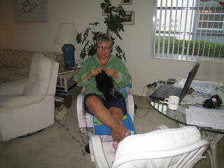 . En del av pensum-artiklene er ferdig tygd, og noe må jeg ta når jeg kommer hjem til uka. Men sånn verden har blitt, kan man altså sitte i Florida med beina på en stol, strikke og høre forelesning…. ser jo ut som en helt vanlig studentsituasjon?? (Jeg har hørt på den en gang før da, dette var bare en repetisjon med bedre øretelefoner)